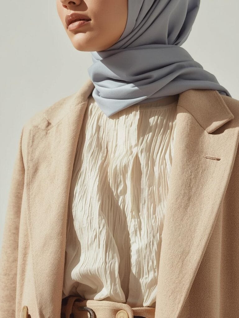 Misalnya, outer linen long coat di atas inner berbahan katun tipis, dipadu dengan hijab satin lembut yang jatuh natural, memberikan kesan berkelas tanpa perlu banyak aksesori. Sentuhan tekstur ini tidak hanya memperkaya visual, tetapi juga memberikan rasa nyaman — hal yang kini menjadi prioritas utama dalam tren fashion hijab global.