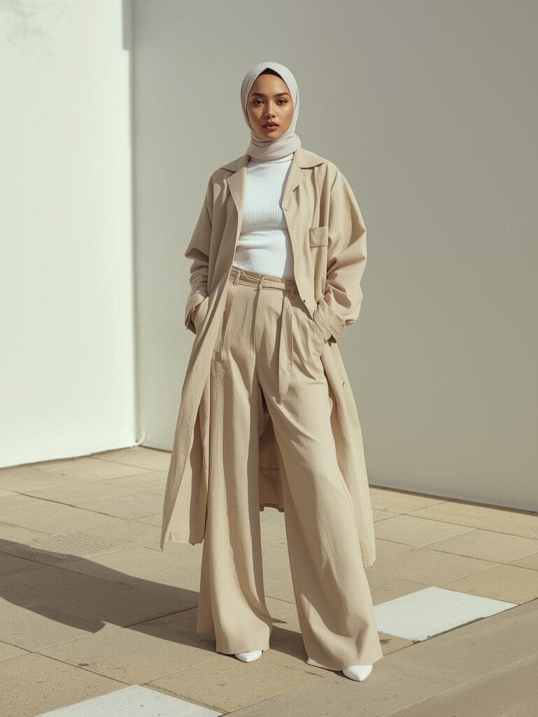 Tren ini mencerminkan keseimbangan antara kenyamanan, kesederhanaan, dan gaya yang autentik — menciptakan tampilan yang stylish namun tetap santun. Di tahun 2025–2026, gaya modest diprediksi semakin kuat, terutama dengan kombinasi silhouette long outer, loose pants, dan warna netral-pastel yang memberikan kesan effortless chic.