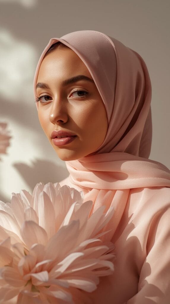 Aksen kecil seperti lipatan lembut di bawah dagu, layering tipis pada sisi hijab, atau padanan outer flowy dapat memperkuat nuansa “mekar”. Detail ini tidak hanya estetis, tetapi juga fungsional—membuat tampilan tampak effortless namun sangat teratur. Dengan memilih detail yang halus, gaya berhijab menjadi lebih refined dan feminin.
