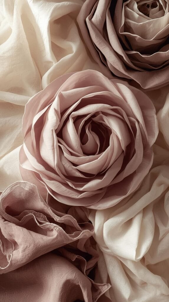 Tekstur memainkan peran utama dalam meniru kesan kelopak bunga yang halus dan ringan. Material seperti matte satin, airy chiffon, viscose lembut, dan voile tipis memberikan sensasi yang hampir menyerupai kelopak ketika disentuh. Kehalusan tekstur ini menghadirkan sentuhan feminin yang tidak berlebihan, membuat tampilan hijab terlihat terawat dan lembut.
