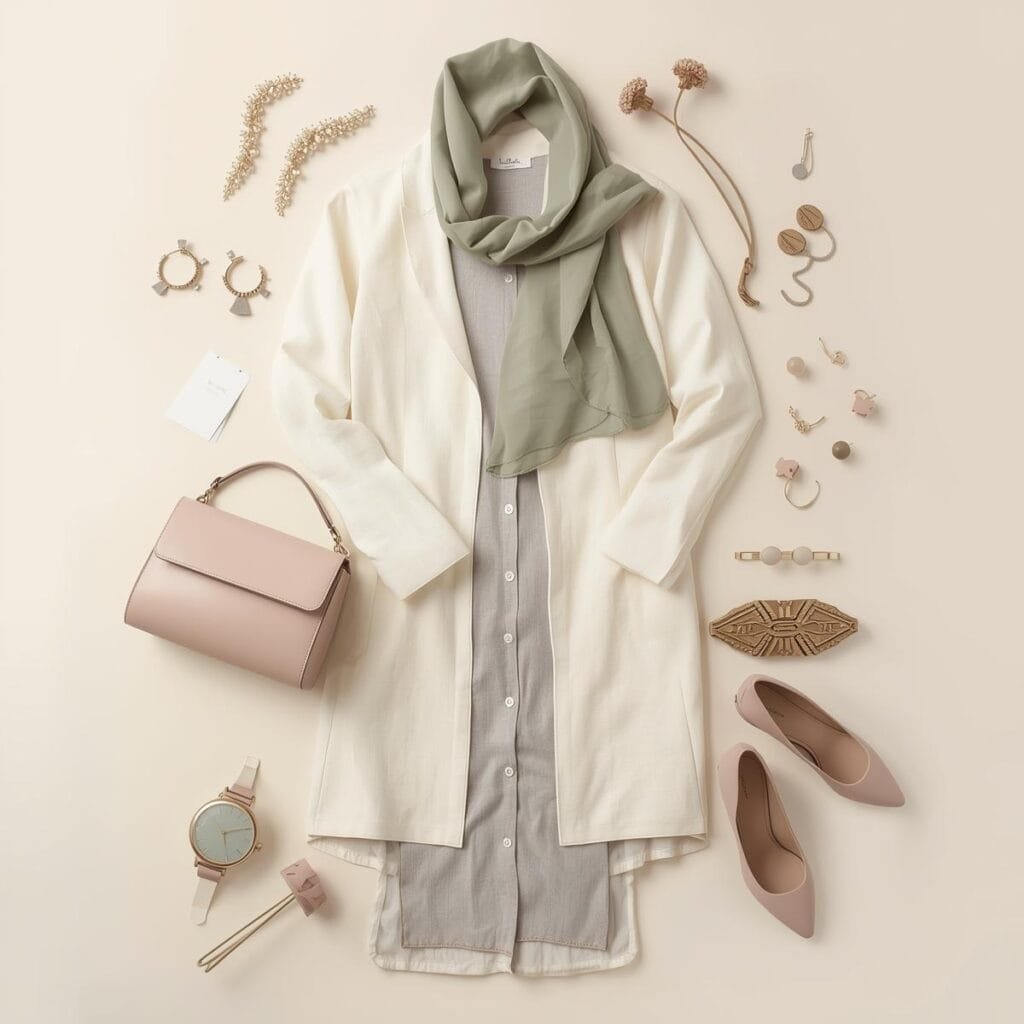 Rahasia dalam mengenakan pastel ada pada keseimbangan. Kombinasikan dua hingga tiga warna dalam keluarga lembut untuk menciptakan tampilan yang tenang namun tetap hidup. Misalnya, hijab blush bisa berpadu dengan tunik lilac muda dan celana cream, menghasilkan palet yang segar tapi tetap kalem.