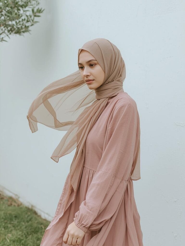 Perempuan berhijab yang memilih siluet lembut tidak sedang bersembunyi; ia sedang menegaskan bahwa keanggunan sejati tak butuh sorotan. Ia hadir dengan tenang, tapi meninggalkan jejak yang lama di ingatan — seperti bayangan lembut yang tersisa setelah cahaya sore pergi.