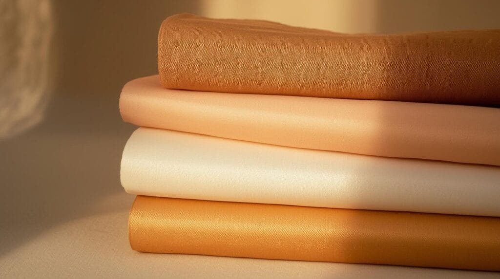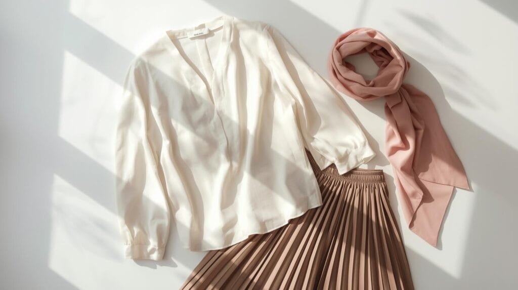 Keunggulan lain dari warna sunyi adalah kemampuannya menampilkan tekstur dengan lebih jelas. Kilau satin matte, tekstur serat linen, atau lipatan chiffon akan terlihat lebih dalam ketika disandingkan dengan warna lembut yang mereda. Inilah yang membuat palet ini begitu disukai dalam fotografi hijab modern.