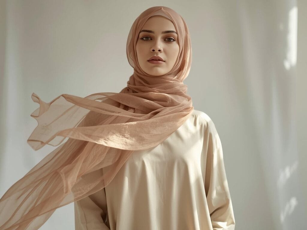 Aksen kecil seperti ikatan halus, lipatan yang terjatuh natural, atau penggunaan outer tipis dapat memperkuat estetika airy. Hindari detail yang terlalu tegas—pilih bentuk yang sederhana tetapi terstruktur lembut. Dengan pendekatan ini, tampilan hijab terasa modern namun tetap memelihara kesopanan visual.